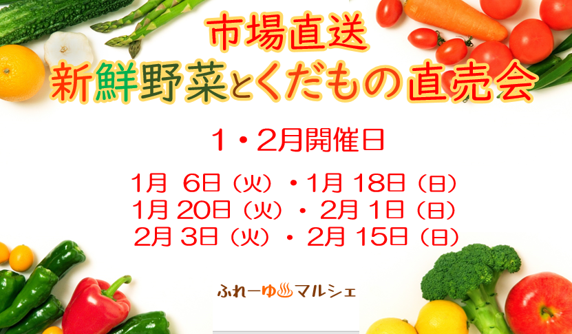 2026年1月・2月【マルシェ】🍴新鮮野菜とくだもの直売会🍅 開催日:1月 6 日(火)・18日(日)・20日(日)/2月1日(日)・3日(火)・15日(日)
