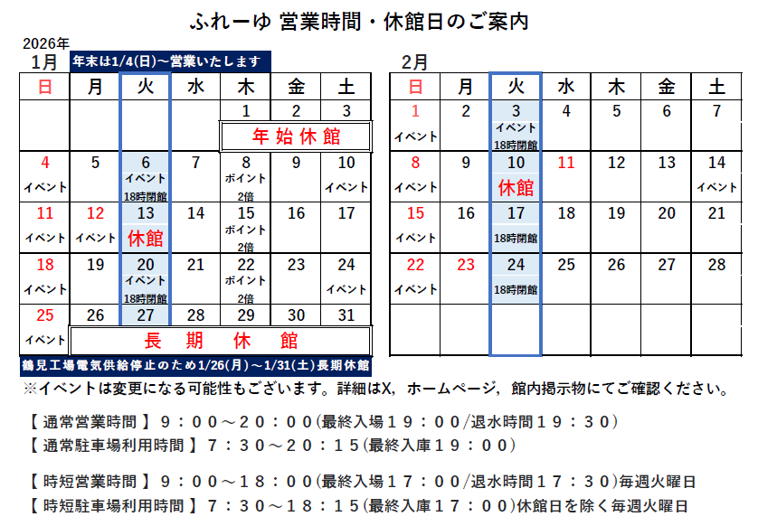 - 【次回の休館日】1月13日(火)と1月26日(月)~31日(土)