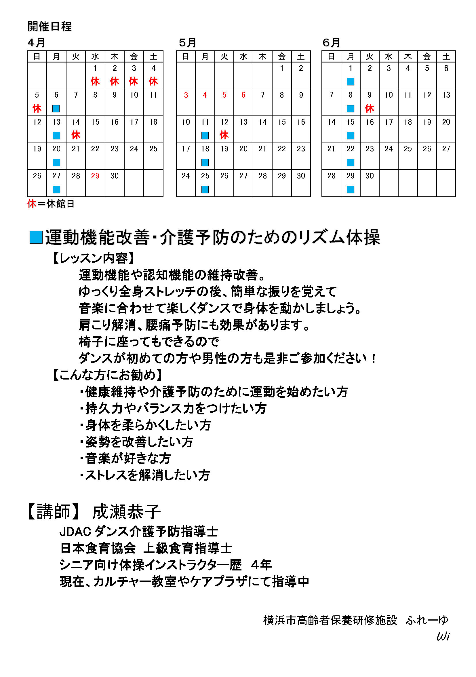 4月〜6月リズム体操クラス