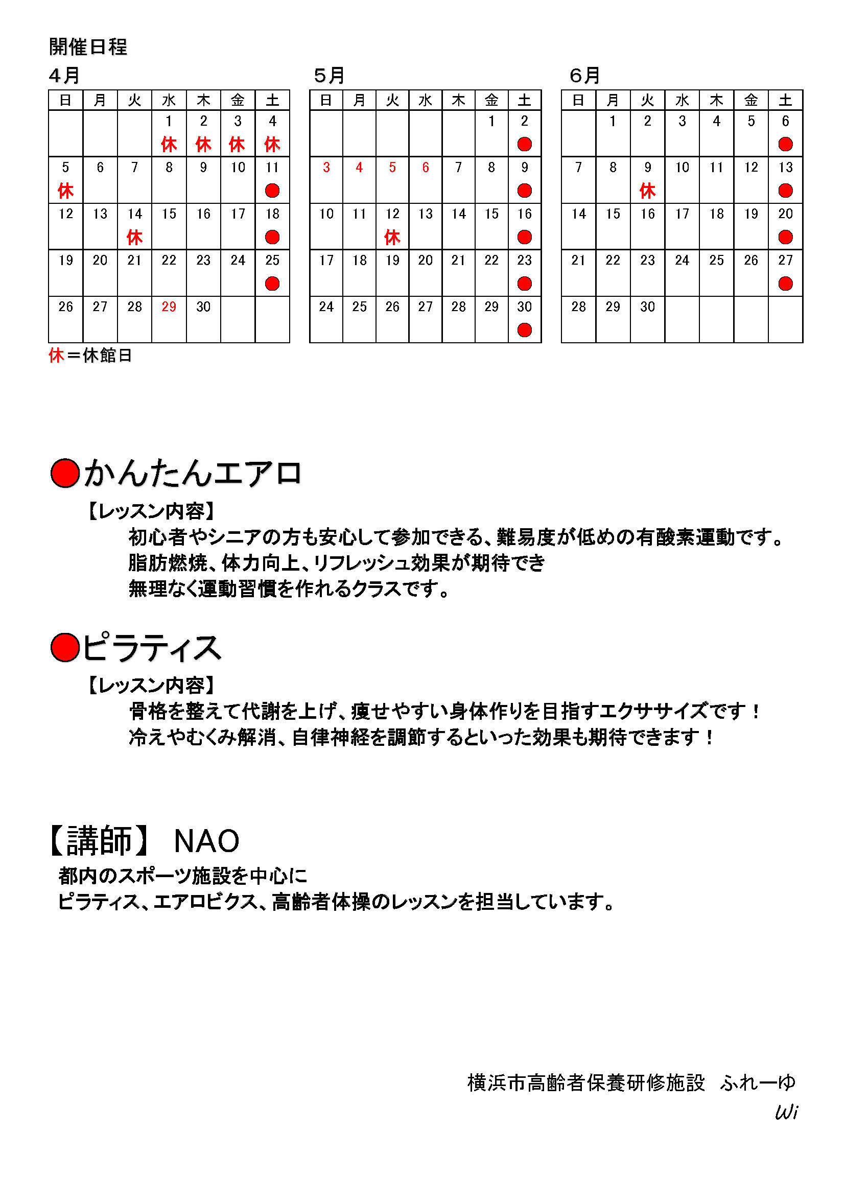 4月〜6月エアロピラティスクラス